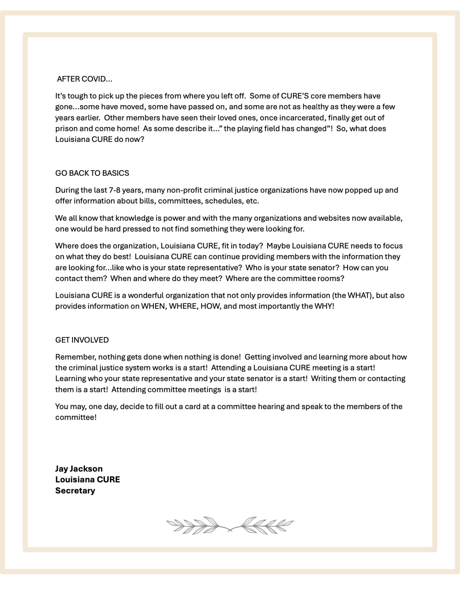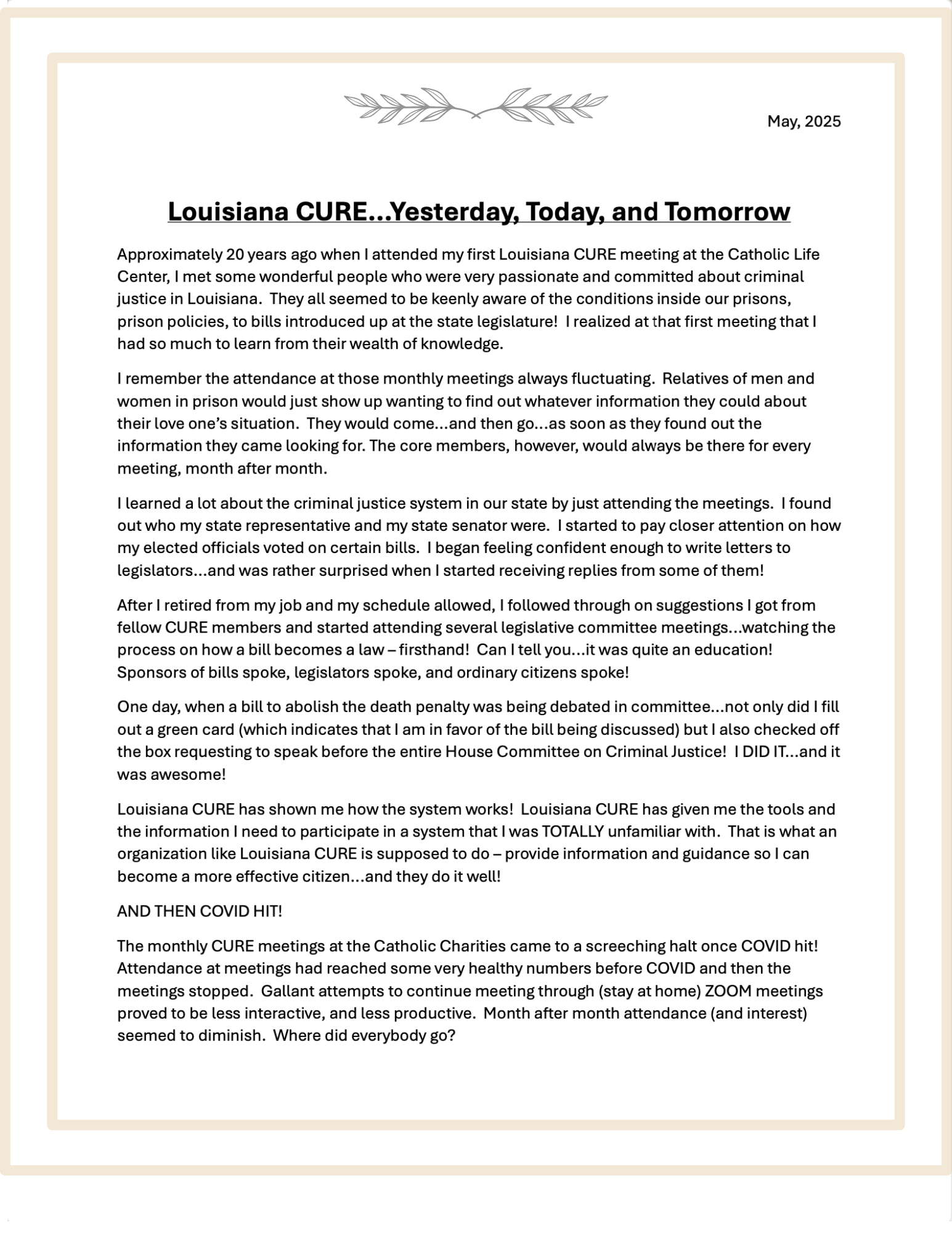 C.U.R.E., Citizens United for Rehabilitation of Errants, CURE, CURE LA, CURE Louisiana, LA CURE, Louisiana CURE, prison advocacy LA, prison advocacy Louisiana, prison Baton Rouge, prison information Baton Rouge, prison information New Orleans, prison Louisiana, prison New Orleans, prison reform, prison reform LA, prison reform Louisiana